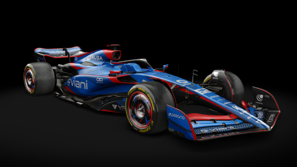 VRC proudly presents the Formula Alpha 2023, a continuation of our FA 2022 project: Around 1000hp, with 160hp coming from an electric powertrain, a 722kg car weight, and plenty of downforce round out this machine as a track beast. The car comes with an overhauled ERS management system and a more realistic engine/differential simulation and more.